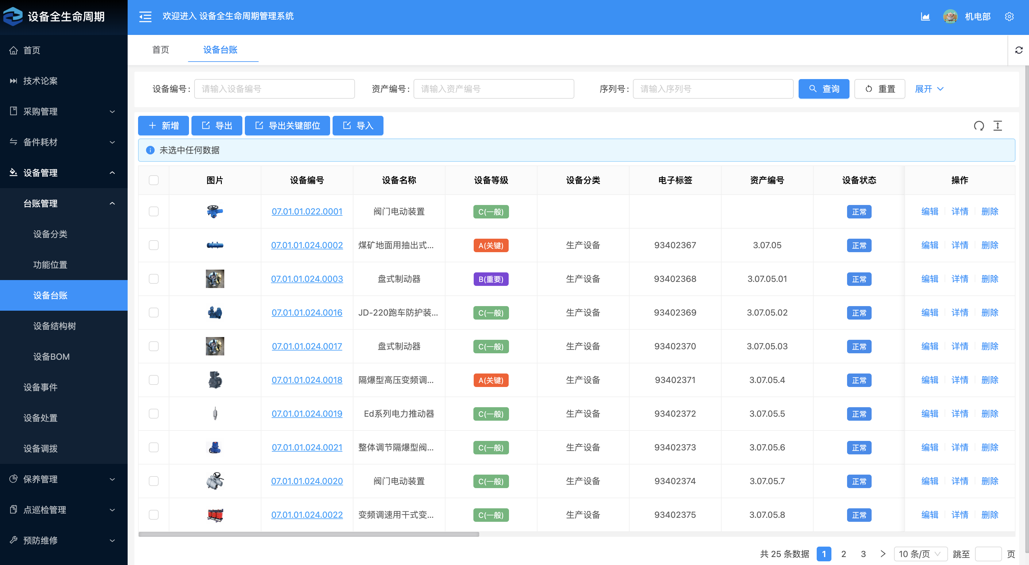 2.数据连续性:确保设备数据在各阶段无缝衔接,提升管理效率。实现设备全链条数字化管理,形成标准化、易于查询与分析的设备档案库。