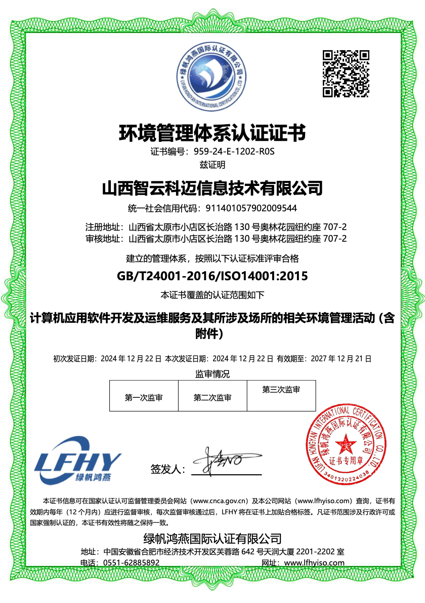 环境管理体系认证证书
