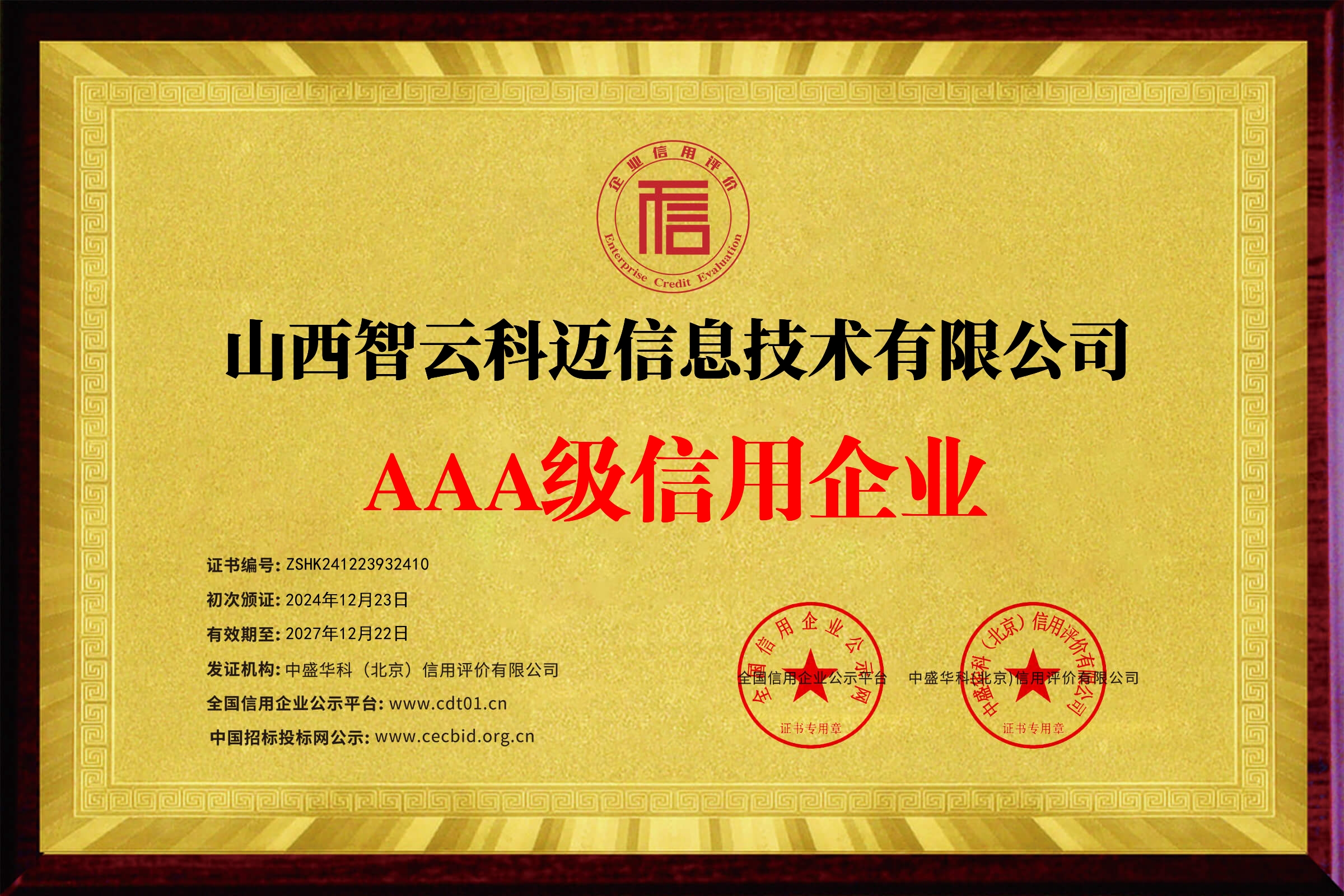 信用等级证书