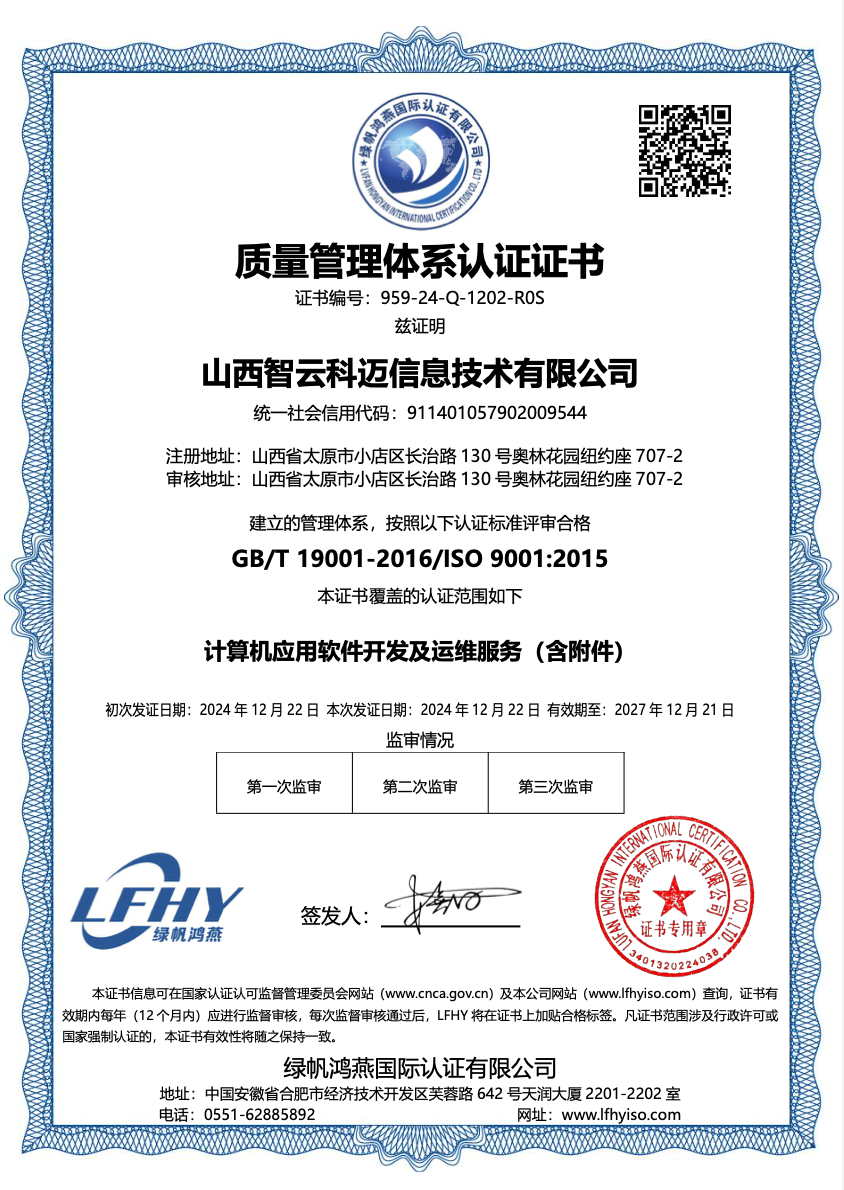质量管理体系认证证书